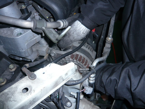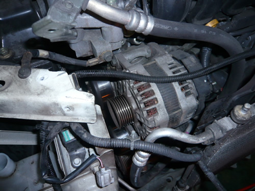 ベルトを外し、オルタネーター後の配線を外します。