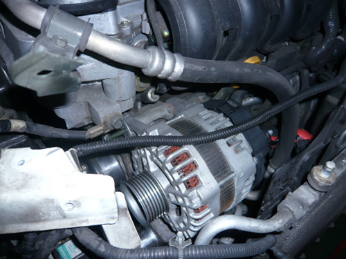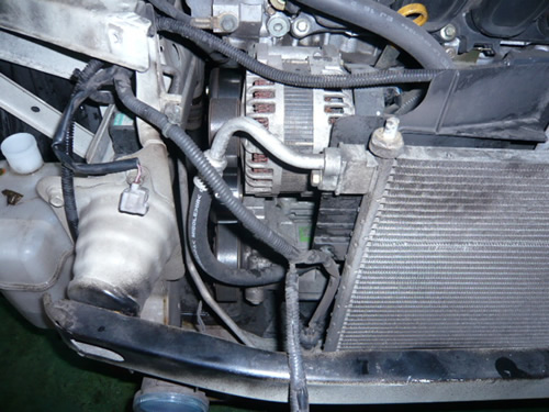 中央部、パイプの下に見えるのがオルタネーターです。
