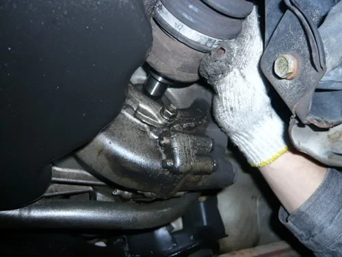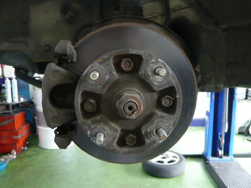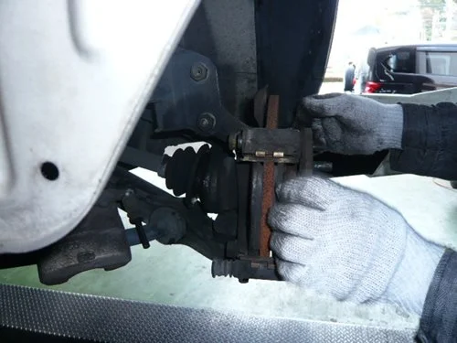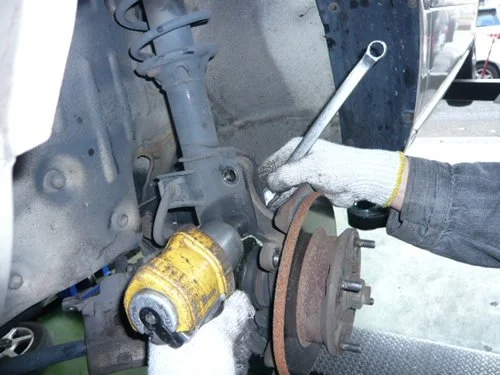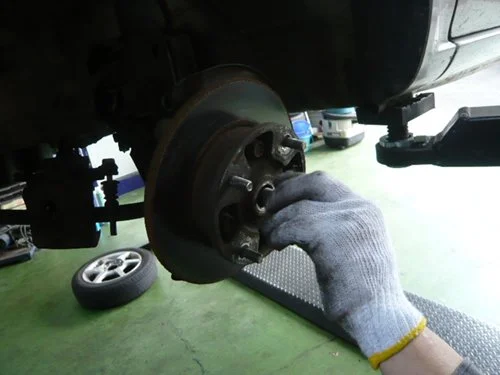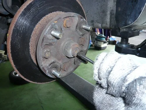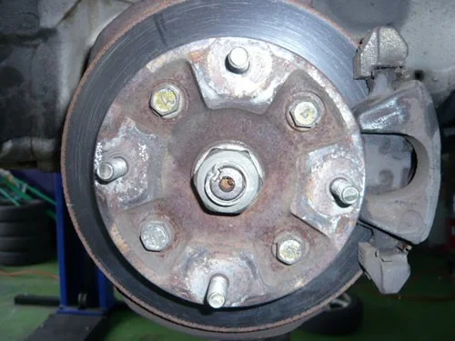 ドライブシャフトの先端は、ハブに挿入されているので、こちらを外す作業から始めます。