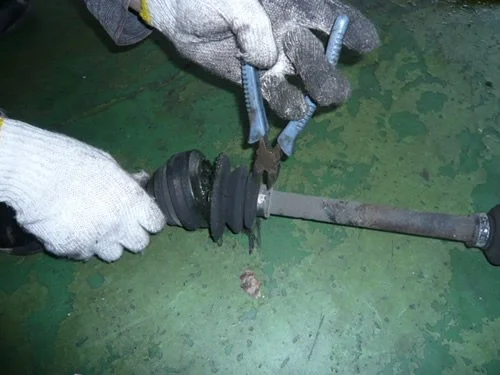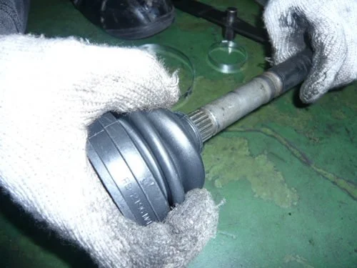 シャフトと、ジョイントのグリースを抜き、パーツクリーナー等で清掃し、新しいブーツをシャフトに挿入します。