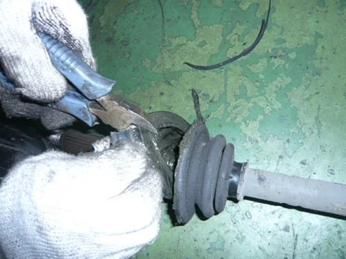 シャフトを外し、写真左側のブーツがパックリ割れています。