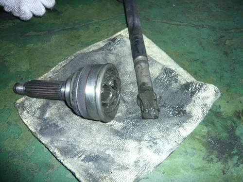 アウタージョイントは走行距離に合わせて摩耗し、ドライブシャフトと噛み合うスプライン(ギザギザに山がある)が摩耗したり、ハブベアリングの取り付け部の摩耗によって交換が必要になります。