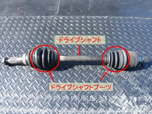部品代目安 6,300円~ 作業工賃目安 3,150円~ ドライブシャフトは動力をタイヤに伝達しているシャフトの事です。 ドライブシャフトブーツはそのジョイント部分をグリスにより 保護しています。 万が一破損していますとグリスが飛び散り、 最悪の場合、ジョイントを破損してしまいます。 又、ドライブシャフトブーツが破損していますと、車検が通りません。