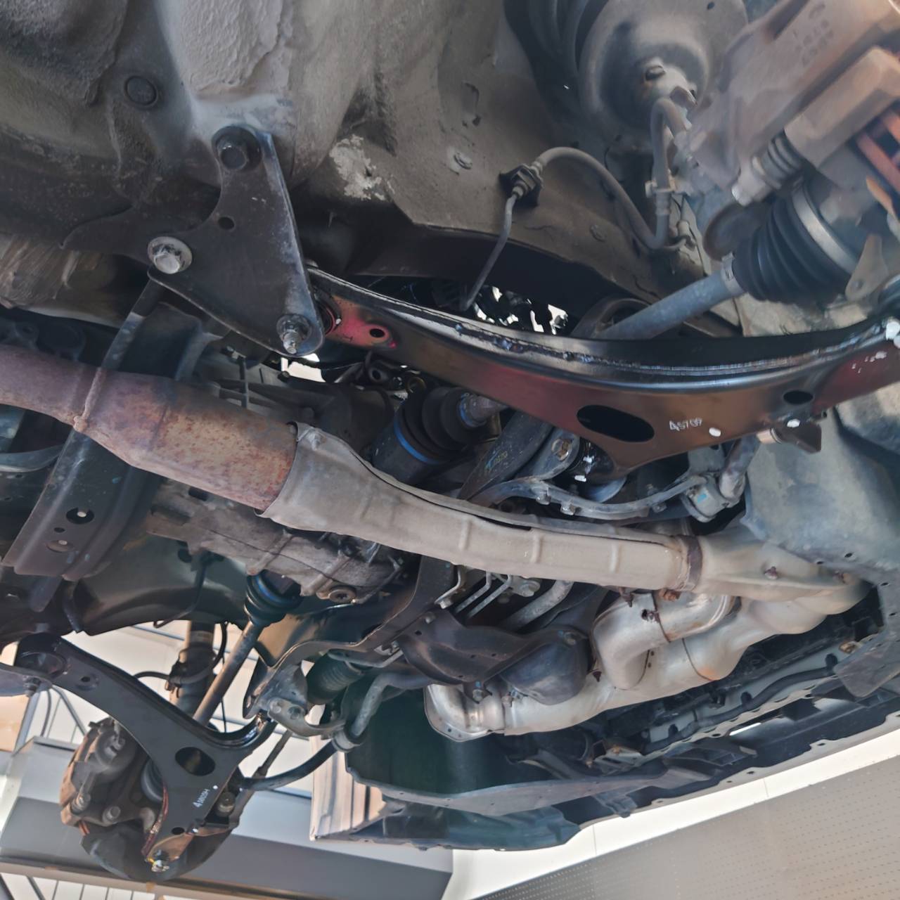フロント右のスタビライザーリンクは、ブーツが破れていたため交換を行いました。また、左右のロアアームもブーツの破れやブッシュの傷みが見られたため、合わせて交換しました。
