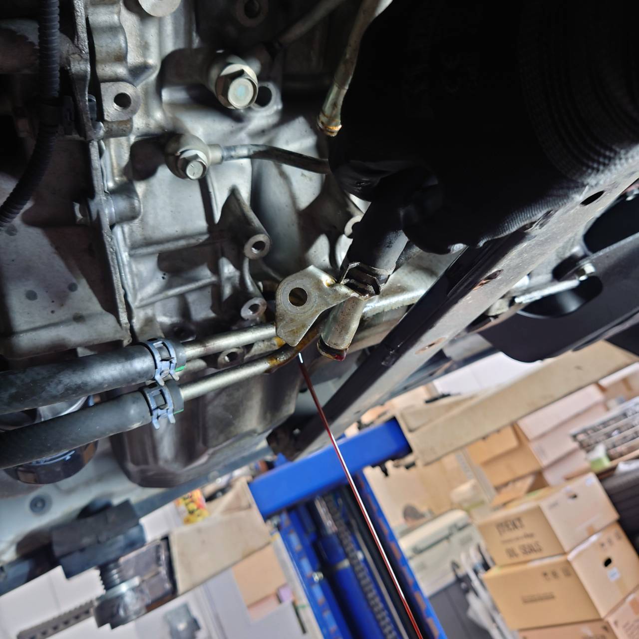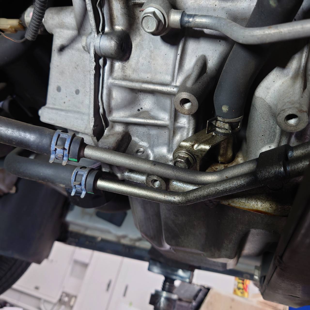 また、ターボのオイルリターンパイプまわりからオイルのにじみがあったため、パイプとOリングを交換し、あわせてエンジンオイルも補充しました。
