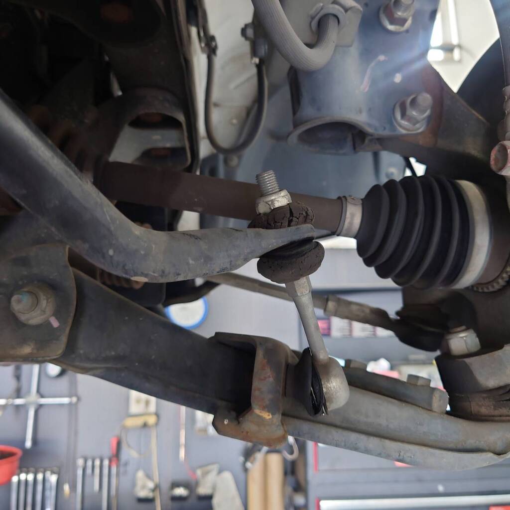 フロント左右のスタビライザーリンクは、ブーツの破れとブッシュの亀裂が見られたため交換を行いました。