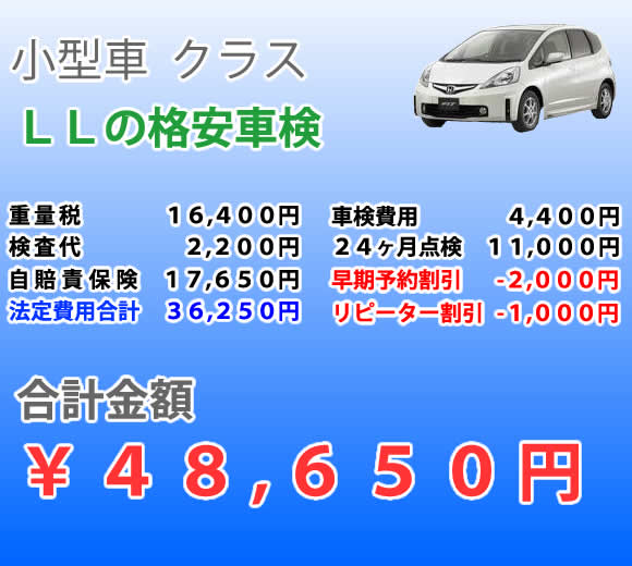 小型車 車検料金表