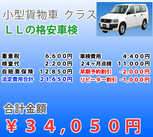 小型貨物車 車検料金表