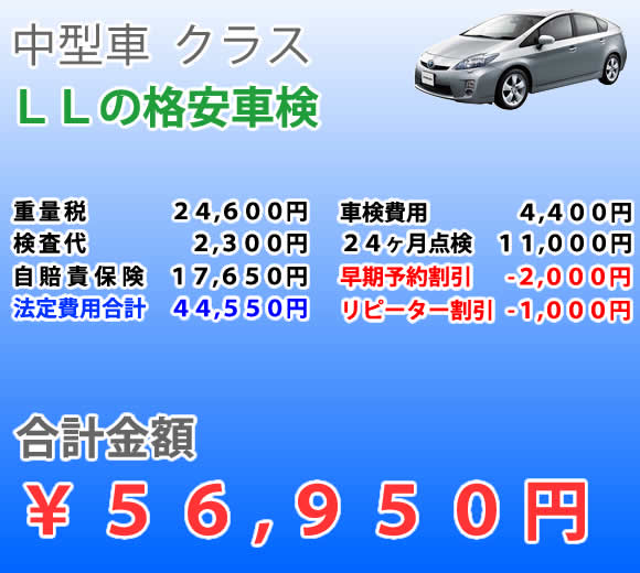 中型車 車検料金表
