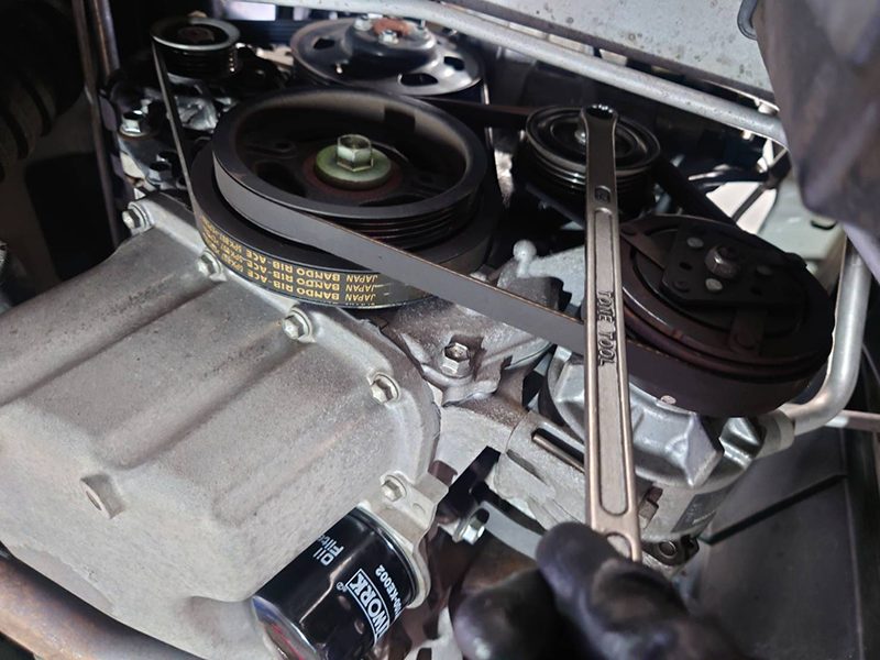ご依頼に合わせて、Vベルト全数の張りを調整しています。