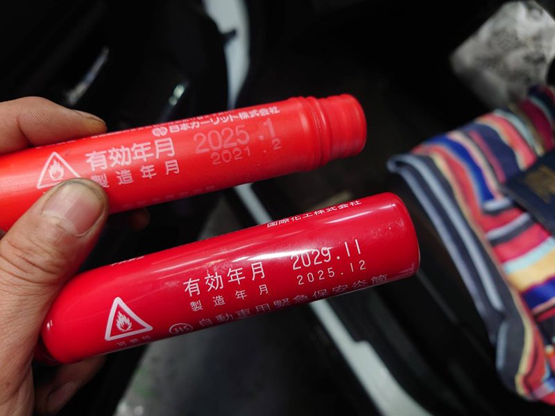 期限切れのため、車載の発煙筒を新しいものに入れ替えました。